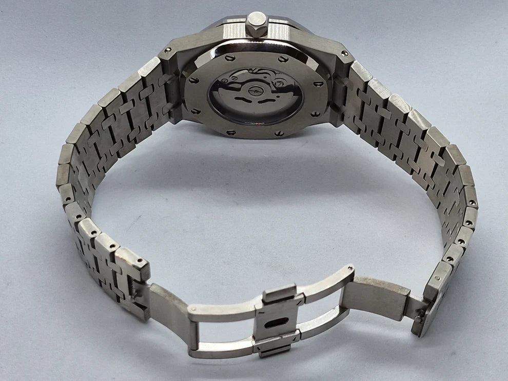 Wir verwenden japanische Uhrwerke, insbesondere automatische Uhrwerke von Seiko, die für ihre Zuverlässigkeit, Genauigkeit und langlebige Leistung bekannt sind.