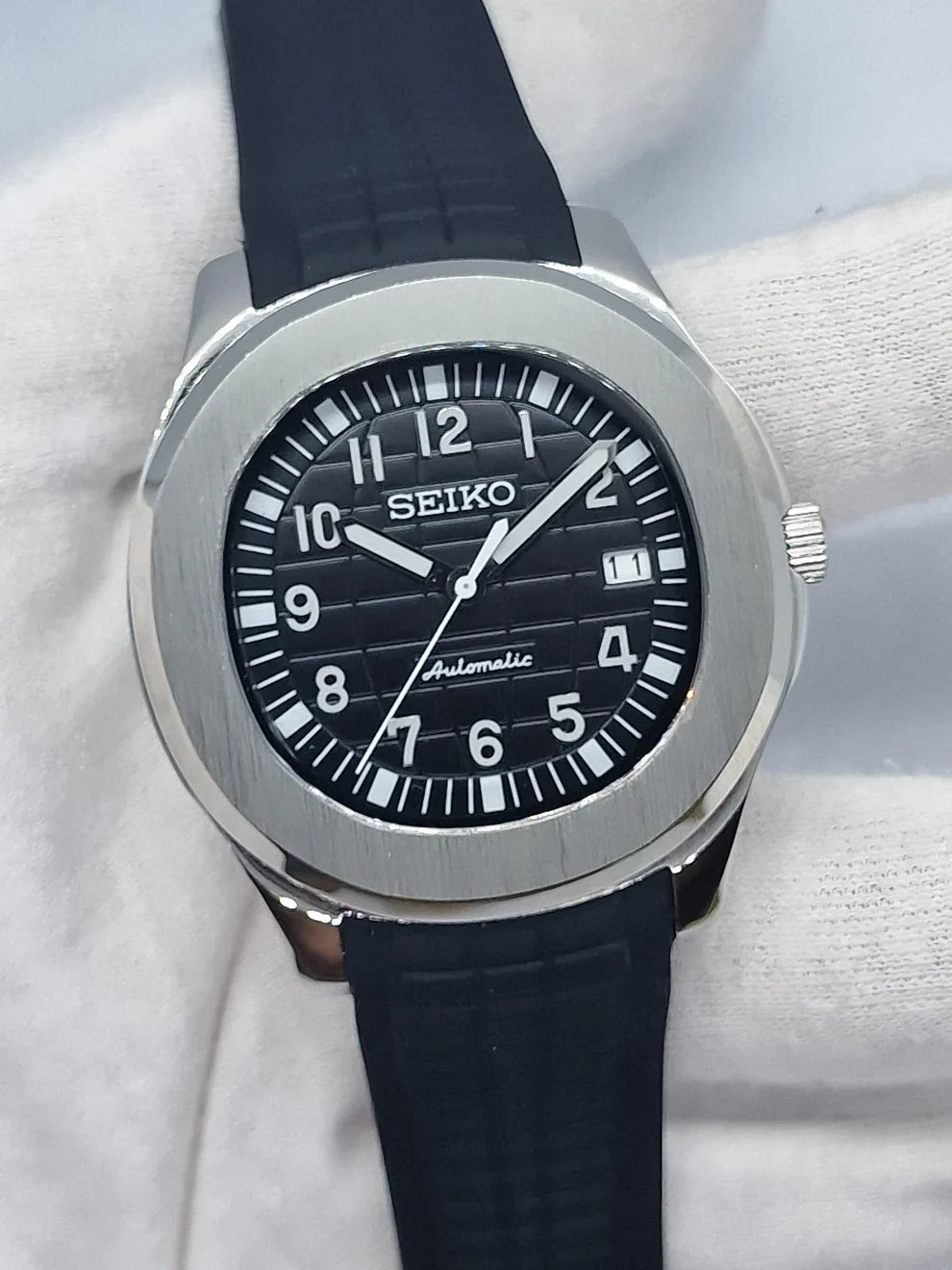 Gefertigt aus 904L Edelstahl, vereint diese Seiko Mod Automatikuhr Präzision und Stil.