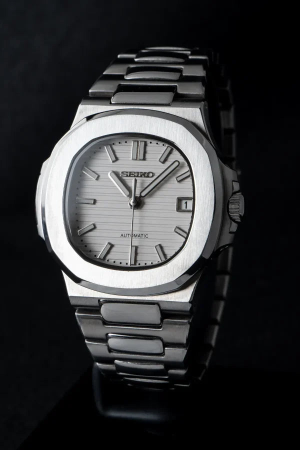 Gefertigt aus 904L Edelstahl, vereint diese Seiko Mod Automatikuhr Präzision und Stil.